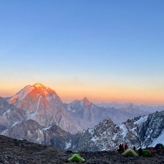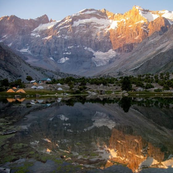 Hoy nos embarcamos en un emocionante ascenso desde los lagos Mutnye hasta el campamento bajo el paso Chimtarga, a una altitud de 4.450 metros. La jornada será exigente pero recompensada con paisajes incomparables y una experiencia única en las montañas Fann. Realizaremos un ascenso gradual para favorecer nuestra aclimatación mientras disfrutamos de vistas impresionantes. Un sendero lleno de contrastes: Comenzaremos caminando por una pendiente suave que, poco a poco, se transformará en un paisaje glaciar al acercarnos al imponente glaciar que desciende del Pico Energy. Desde el Paso Chimtarga tendremos excelentes vistas, momento idóneo para tomarnos un descanso y un tentempié. Iniciaremos un descenso breve hacia el campamento bajo el paso Chimtarga. Aquí, rodeados por los picos más imponentes de la región, como el Chimtarga y el Pico Energy, descansaremos y disfrutaremos de una cena reconfortante mientras admiramos un paisaje que parece sacado de un sueño. Alojamiento en tiendas de campaña. Hoy se incluye desayuno, almuerzo y cena.