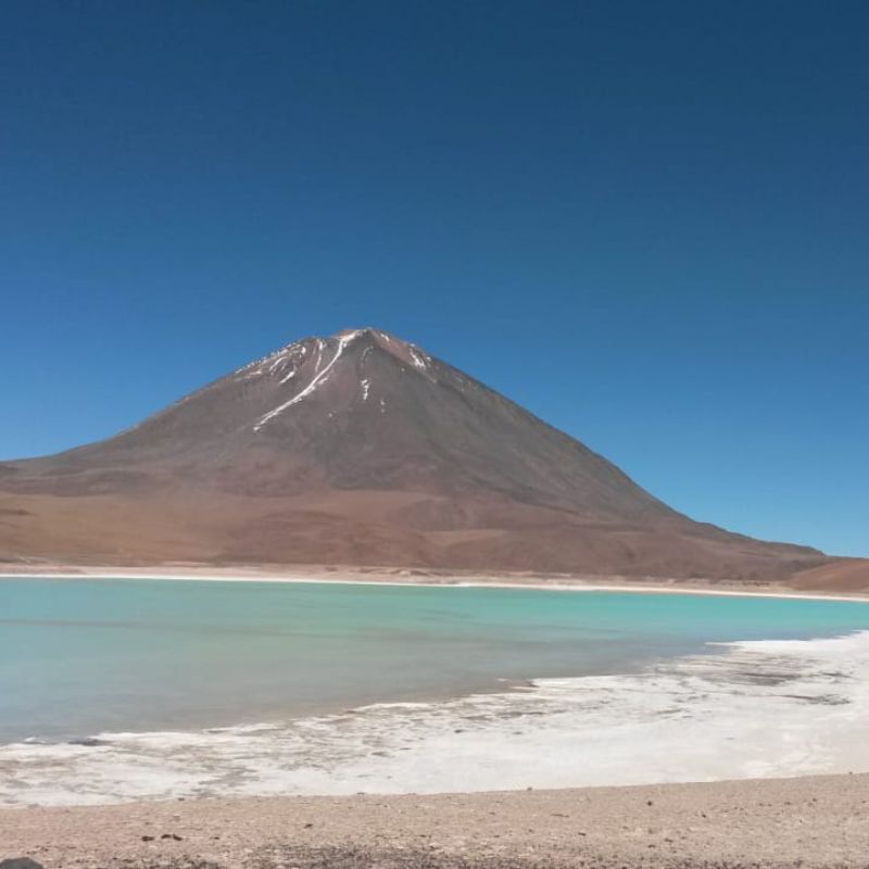 El Altiplano en su Máximo Esplendor: Lagunas Blanca y Verde: Nuestra expedición llega a su punto más alto al visitar las Lagunas Blanca y Verde, situadas a 4.350 m. a los pies del imponente Volcán Licancabur. El color esmeralda de la Laguna Verde es un espectáculo visual único, originado por la alta concentración de magnesio y minerales en sus sedimentos.